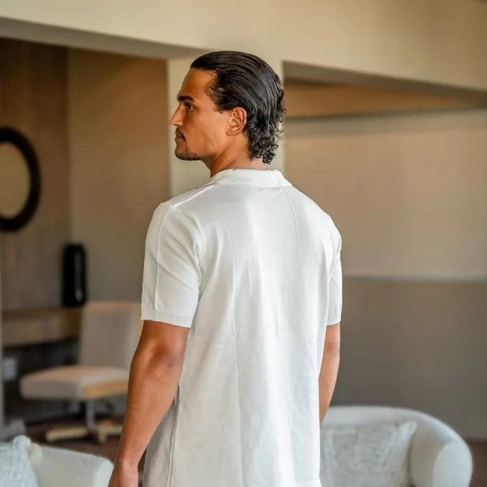 Tessuto premium in cotone con elastan, leggero e traspirante. Vestibilità aderente ma confortevole, che valorizza la silhouette. Logo ricamato discreto per un tocco elegante. Apertura classica a due bottoni per un look intramontabile. Si abbina facilmente a pantaloni in lino, jeans o bermuda.