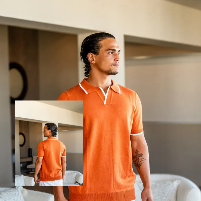 Maglia premium: morbida, elegante e traspirante. Dettagli a contrasto sul colletto e sulle maniche. Vestibilità moderna che valorizza la silhouette. Blu navy classico e altre tonalità versatili. Perfetto per passare dal casual al sociale con naturalità.