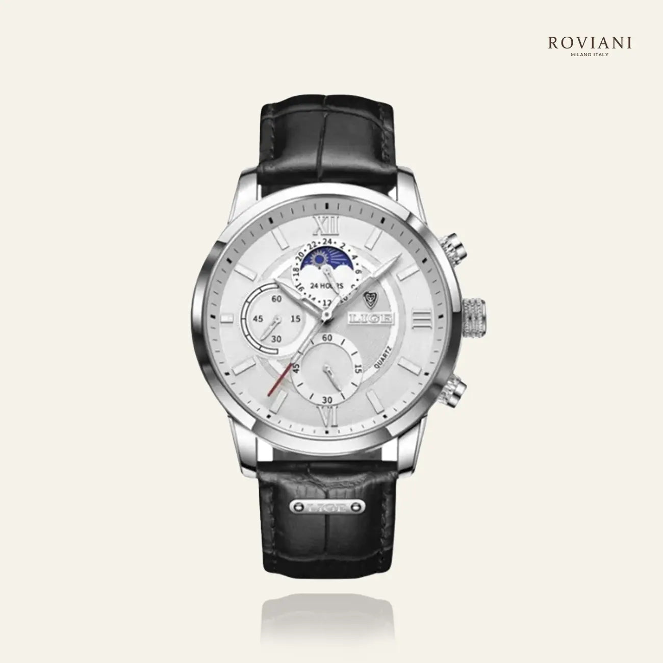 Eleganza senza tempo: estetica raffinata con finitura completamente argentata. Qualità superiore: struttura solida con acciaio inox ad alta durabilità. Precisione moderna: quadrante minimalista e funzionale per l’uso quotidiano. Versatilità di stile: perfetto per occasioni casual o formali.